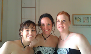 WEDDING DAY! I know I'm skipping, but I'm sure you'll understand that my hands were busy with things other than my camera for most of the time between the above shot and this one. Here are my gorgeous bridesmaids, humoring me with a shot as we waited at the chapel.